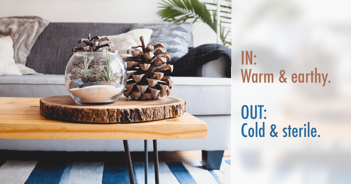 Bringing outdoor elements into the home can help warm up a sterile space. And natural materials can soften a modern design esthetic.